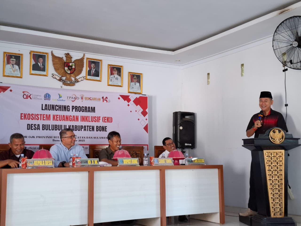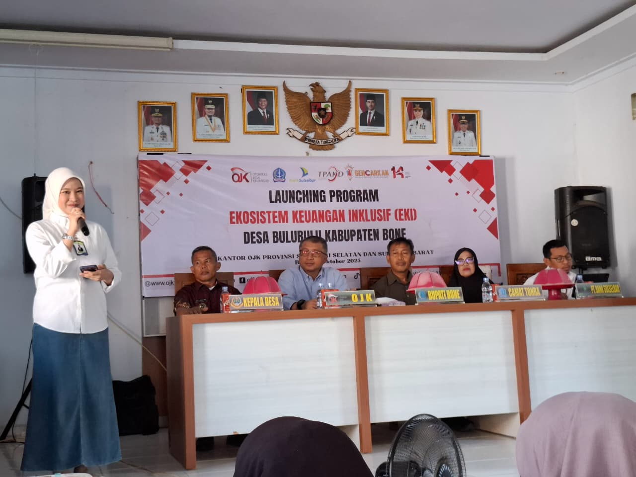 Bulu Bulu 24/10/2025,— Kantor Otoritas Jasa Keuangan (OJK) Provinsi Sulawesi Selatan dan Sulawesi Barat melaksanakan kegiatan Launching Program Ekosistem Keuangan Inklusi (EKI) di Desa Bulu Bulu, Kecamatan Tonra, Kabupaten Bone. Kegiatan ini merupakan langkah strategis OJK dalam memperluas akses keuangan bagi masyarakat desa, mendorong literasi keuangan, serta memperkuat kemandirian ekonomi masyarakat melalui pemanfaatan layanan keuangan formal.