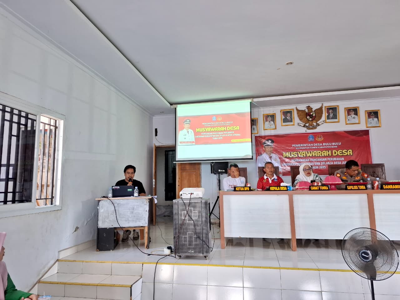 Musyawarah ini dihadiri oleh berbagai unsur pemerintahan dan tokoh masyarakat, Kader Kesehatan Desa, Penerima Bantuan Langsung Tunai Dana Desa, Lembaga Desa. Turut hadir Camat Tonra yang diwakili oleh Sekretaris Camat Tonra, Ibu Patma, S.Pd, Kapolsek Tonra AKP H. Yulhaidir, S.Sos, Kepala Desa Bulu Bulu Drs. H. Muh. Arif, MM, IPTU Andik Siswanto, TPP P3MD Ibu Salmawati, S.Pd, serta Ketua BPD Desa Bulu Bulu bersama seluruh anggota.